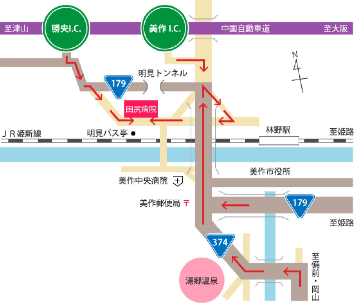 中国自動車道(大阪方面/津山方面)大阪方面から美作インターより車で5分